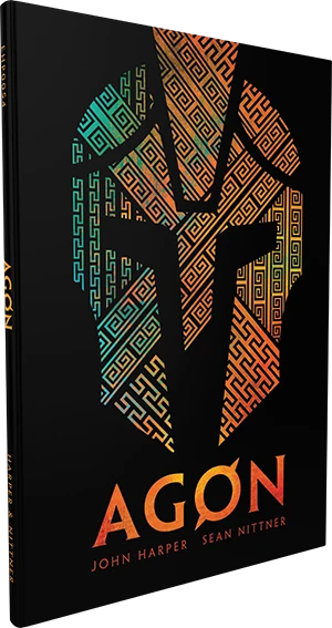 Far back in the mists of antiquity, a poet sings of great deeds wrought by mighty heroes—of monsters slain and justice restored, of wise council and devious strategies, of courage, valor, and daring—defiant of the gods themselves. In Agon, you create and play these heroes, crafting their epic tale into an immortal legend.