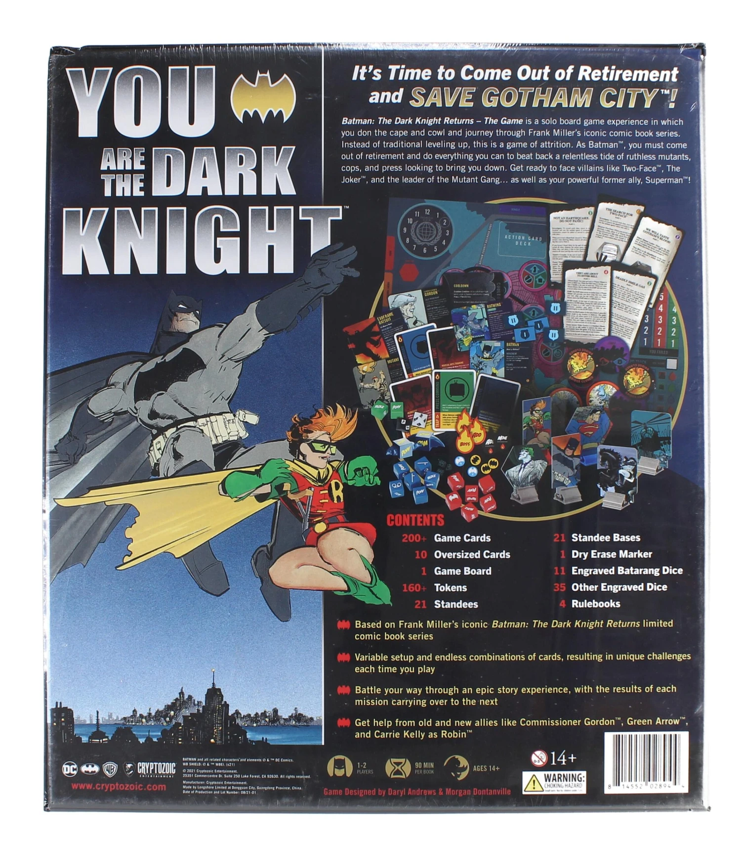 In the solitaire Batman: The Dark Knight Returns Board Game, you play “The World’s Greatest Detective”, who’s been pulled back from retirement into a gritty Gotham. Do everything you can to beat back a relentless tide of ruthless mutants, cops, and press looking to bring you down. Instead of traditional leveling up, this is a game of attrition. An old Batman tries to survive one final gauntlet, facing old and new villains — such as Two Face, Billy Berserk, and The Joker — and even his most powerful ally, The Man of Steel himself.The game is playable as standalone “missions” or one epic playthrough in which the results of each mission carry over to the next.