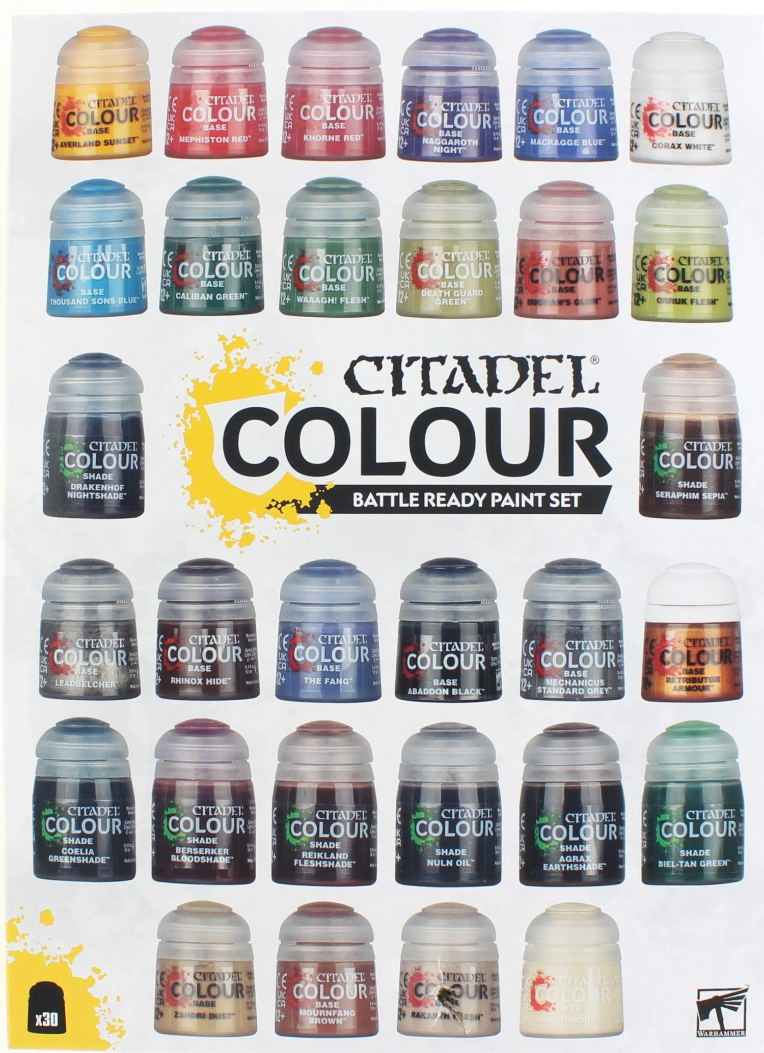 This paint set is a great start to your collection of mini paints! It includes 30 pots of paint including some of Citadels Iconics23 Base Paints and their ever popular Shade paints!