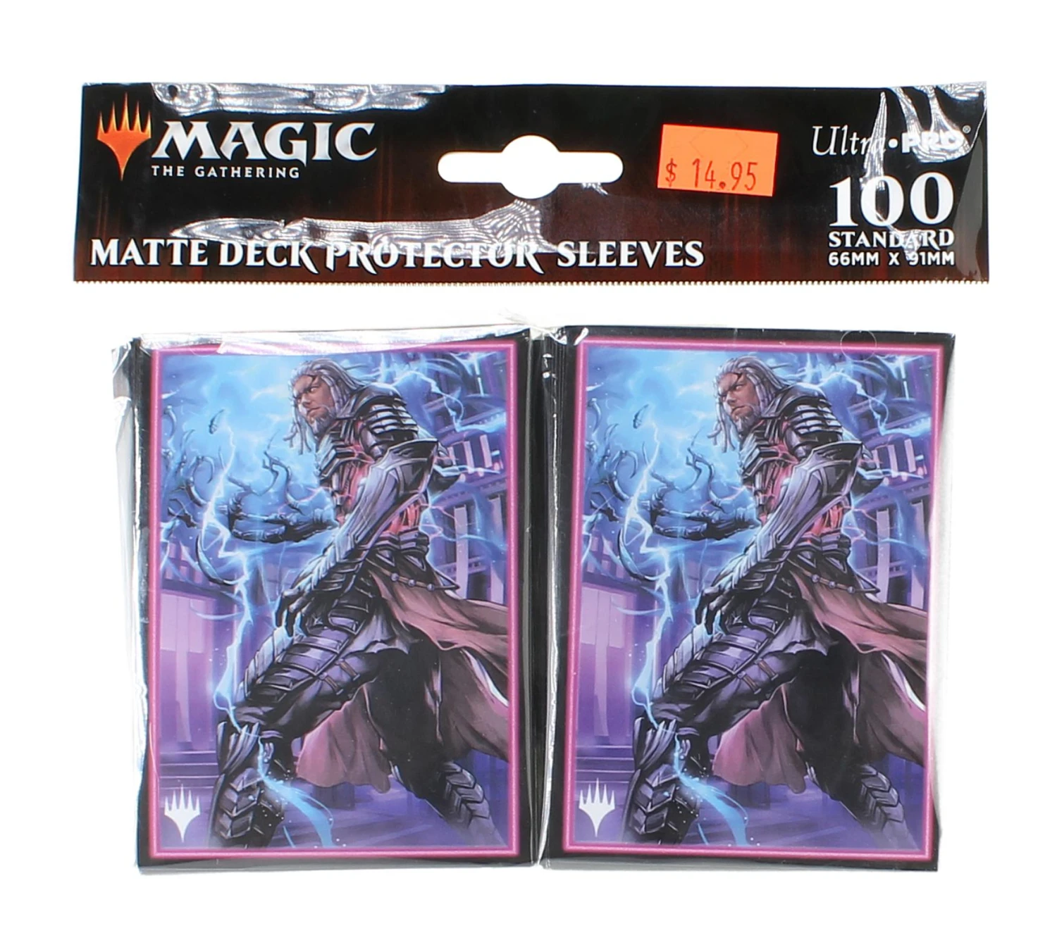 100ct Deck Protector® sleeves for Magic: The Gathering feature full-color artwork with spot foil accents, and are made with our proprietary ChromaFusion(TM) technology to prevent peeling. Archival-safe polypropylene materials ensure you can sleeve your cards with confidence. Sized for standard size trading cards measuring 2.5 in. x 3.5 in. The matte finish offers a glare-free, camera ready play experience!