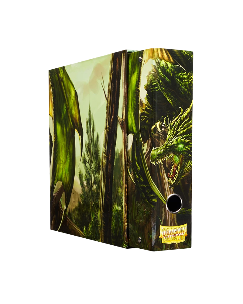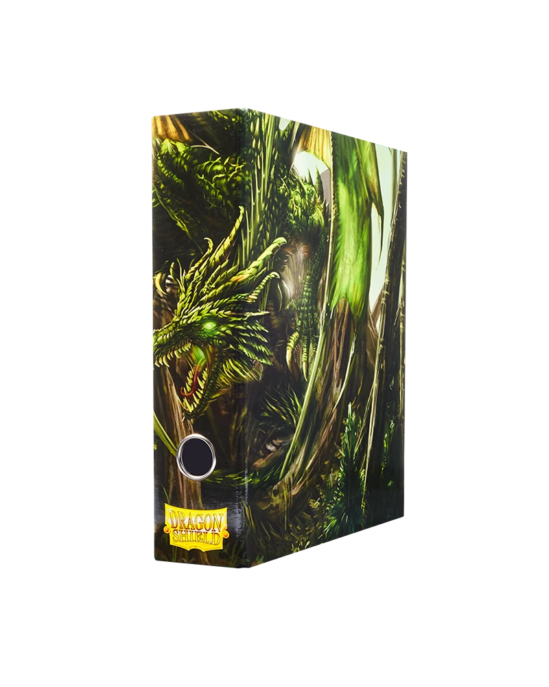 Beautiful full wrap-around artwork featuring the Green dragon, Radix. Artwork by Godfrey Escota. The ultimate way to protect and display your collection. The Dragon Shield Slipcase Binder is a high quality binder with a solid 3D ring mechanism. The sturdy binder case makes sures the binder stays upright on the shelf, even with many cards inside. The binder includes a compressor bar, which keeps your binder pages in check and it features a tough and easy-to-clean high-gloss exterior.