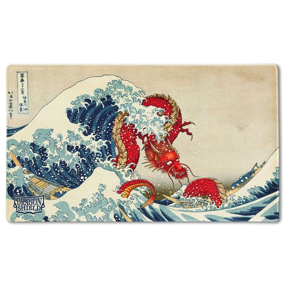 A playmat with ‘The Great Wave’ artwork by Hokusai. Dragonized by Sabine van Apeldoorn. Part of volume III of the popular Dragons in Art series.