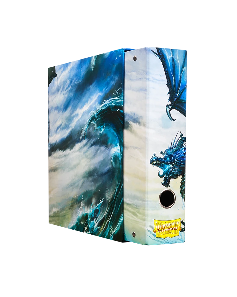 Beautiful full wrap-around artwork featuring the Blue dragon, Kokai. Artwork by Godfrey Escota. The ultimate way to protect and display your collection. The Dragon Shield Slipcase Binder is a high quality binder with a solid 3D ring mechanism. The sturdy binder case makes sures the binder stays upright on the shelf, even with many cards inside. The binder includes a compressor bar, which keeps your binder pages in check and it features a tough and easy-to-clean high-gloss exterior.
