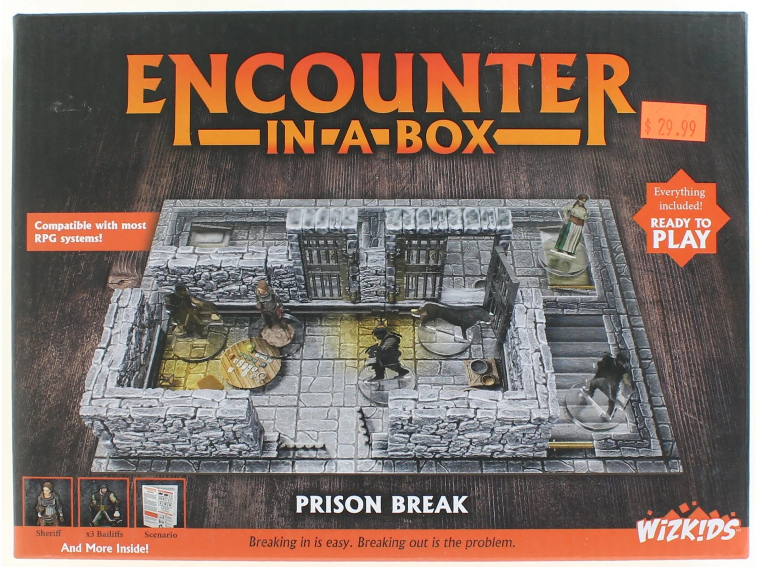 Make your game night an encounter to remember with Encounter in a Box: Prison Break! Inside, you will find a scenario booklet and everything you need to run it, including miniatures, WarLock Tile map dressings, and map tiles. The scenario is compatible with most RPG systems and provides optional hooks to diversify the gameplay.