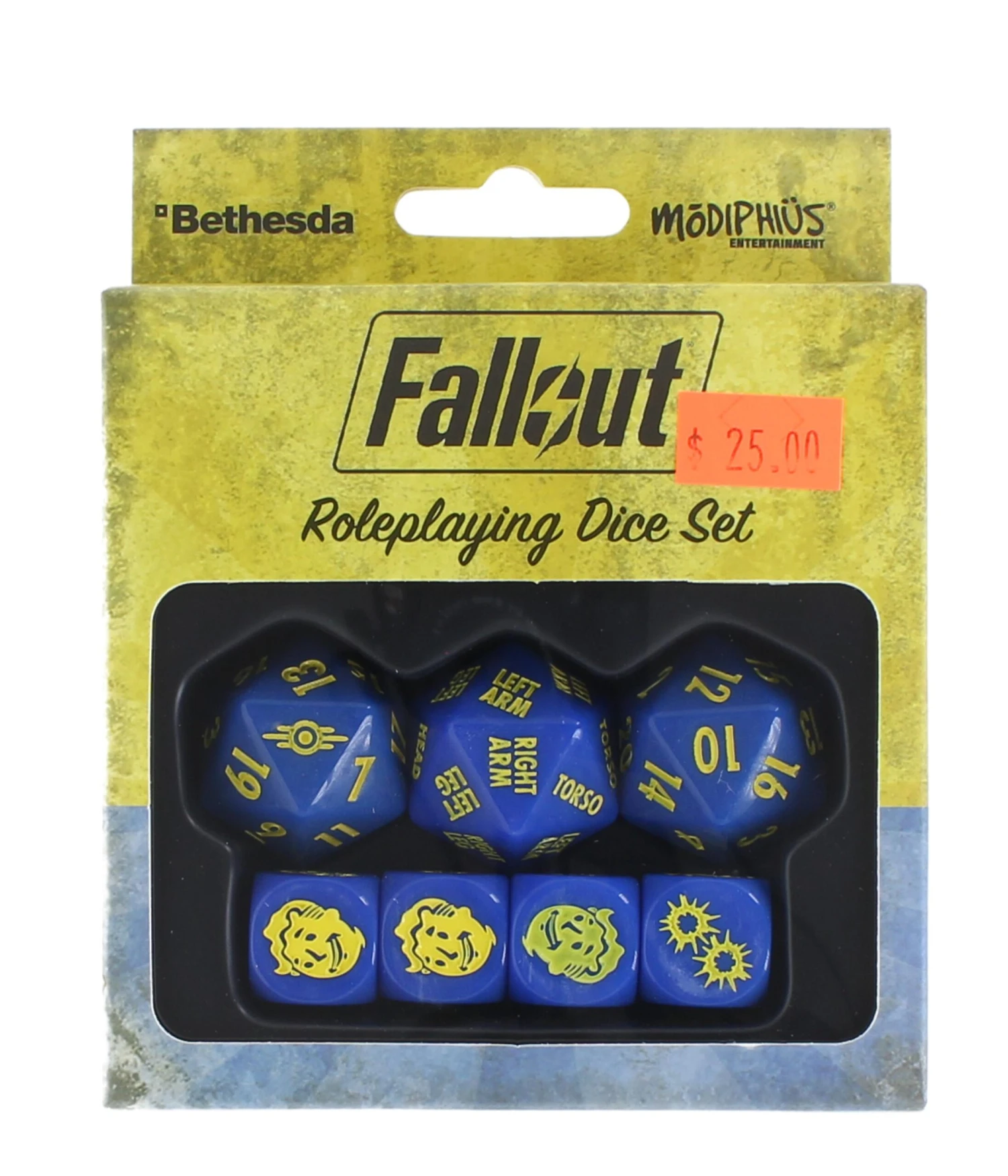 Specially tailored to the Fallout Roleplaying Games, these dice cover all the mechanics in the game.