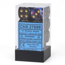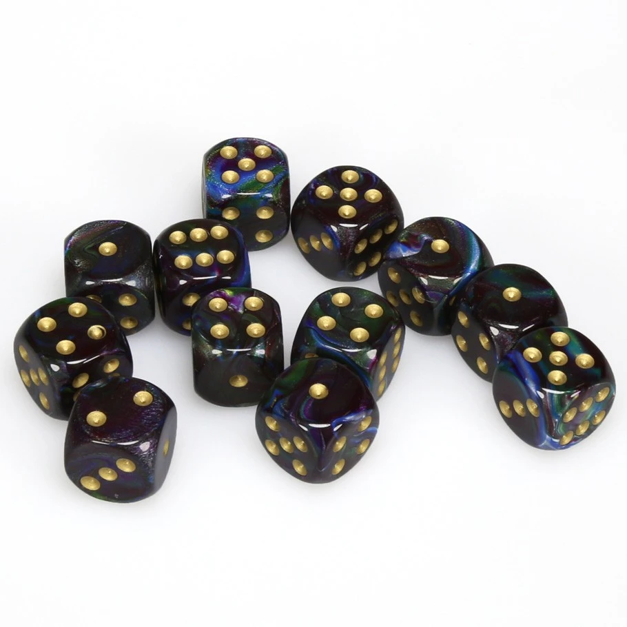 Lustrous 16mm D6 Shad/Golden Dice Block (12)