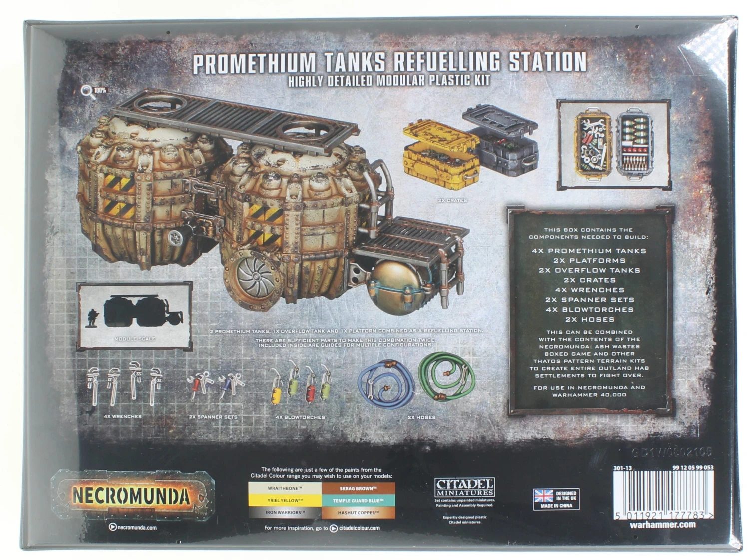 Fuel is scarce in the ash wastes. So your gang is gonna want it. The terrain features multiple build options as well as smaller boxes and tools bits to customize as you wish.