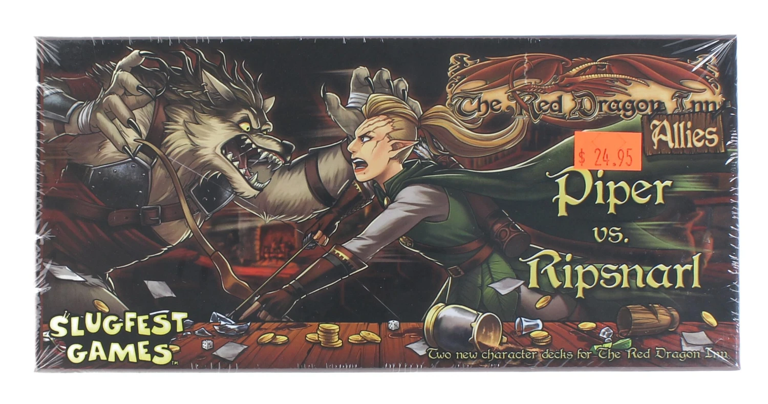 One is a skilled hunter, the eagle-eyed sniper who never misses a shot. The other is a fearsome werewolf, who is both a formidable villain and a literal party animal. You’ve seen these two tangle in Battle for Greyport, our cooperative deckbuilding game, but now they’re coming to the tavern to join the party as our 48th and 49th characters for The Red Dragon Inn! Piper – The Good: Piper never misses a shot! The Bad: This applies to drinking contests as well as archery. Ripsnarl – The Bad: Ripsnarl keeps his claws razor sharp…The Worse: …and Piper has the scars to prove it! Also includes a Prize card!