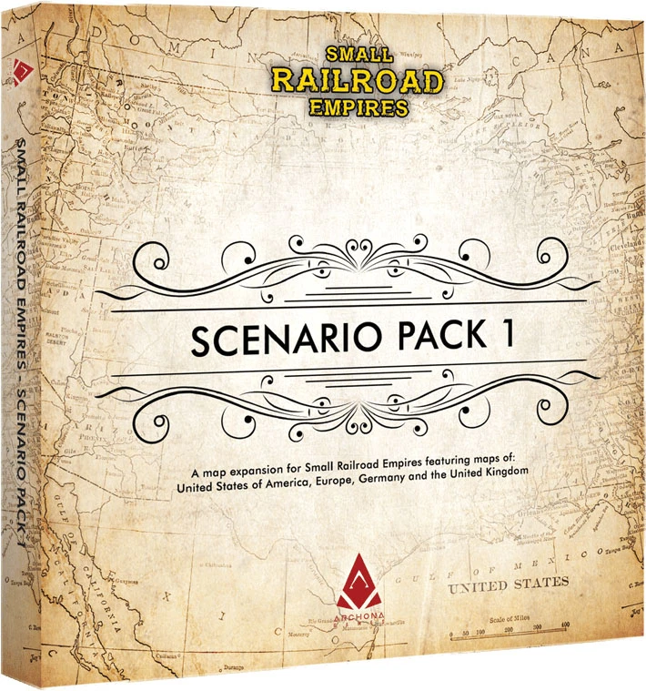 Expansion for Small Railroad Empires featuring Scenario Maps of: United States, Europe, Germany and the United Kingdom.