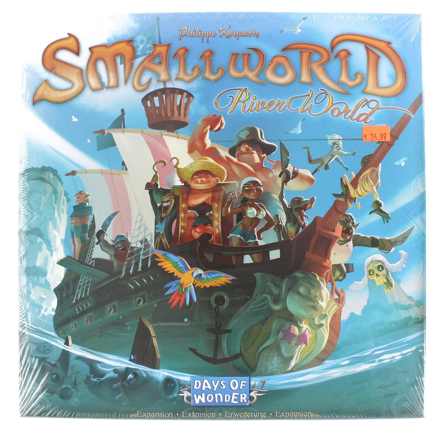 With River World, discover new Small World maps, new places, and new enemies! Control harbors to score more victory points, use the caravel to reach the far end of the board, or use the temple of the seer to see the future. Each turn, a special Event occurs: pirates, storms, freezing cold—only the hardy survive in River World. This product is an expansion: Small World base game required to play.