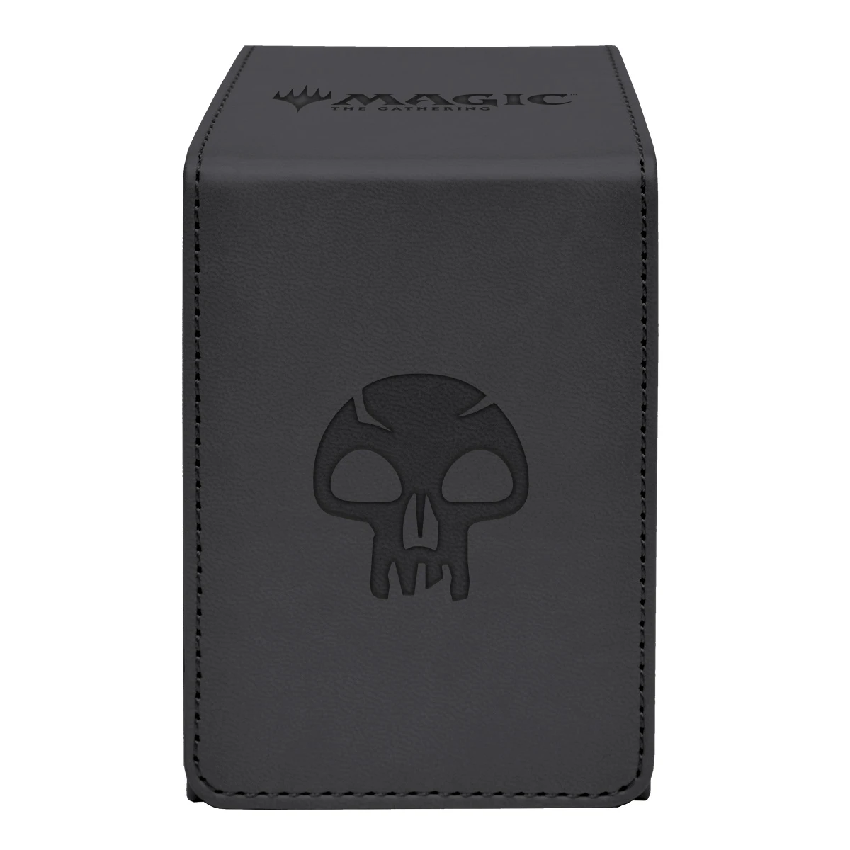 Give your valuable Magic: The Gathering collection the home it deserves with these premium Alcove Flip Box storage cases made with a matte leatherette finish featuring “Swamp Mana” symbol in dark grey from the popular trading card game. The Alcove Flip Box can hold up to 100 double sleeved cards with its lid secured by strong magnetic closures utilizing multiple magnets for extra protection. The lid can be undone on both sides of the box to reveal dual thumb notches for easy access to your deck of cards. The Alcove Flip Box is a great storage device for organizing and protecting your collection at home or on-the-go at your next gaming session!Official Magic: The Gathering Alcove Flip Box featuring the “Swamp Mana” symbol in dark grey finish