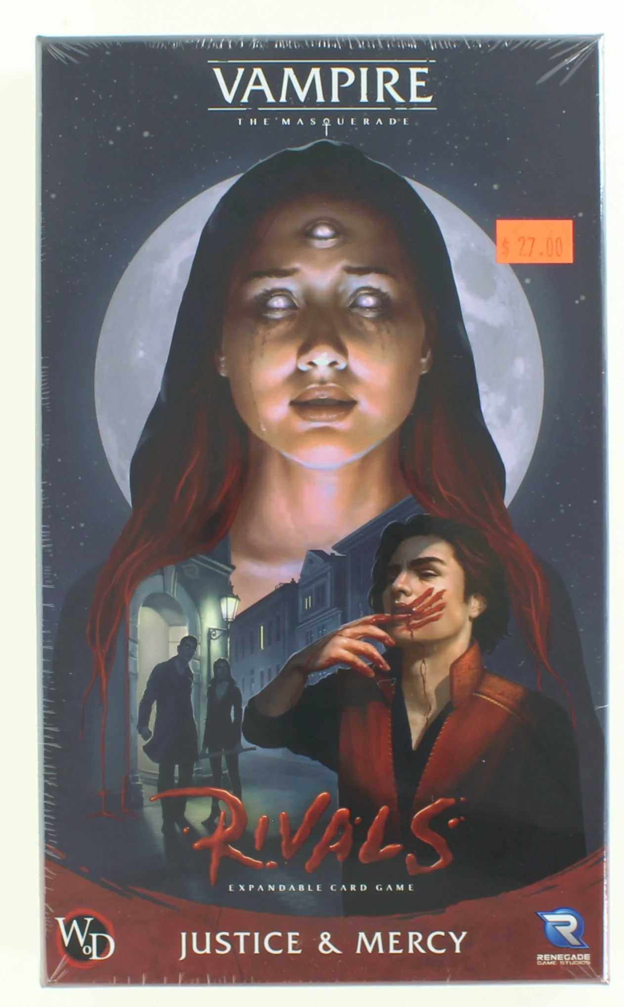 Justice & Mercy is an expansion for Vampire: The Masquerade – Rivals that adds two new clans, each on a different path: BANU HAQIM & SALUBRI. The Banu Haqim are judges and lawbringers with both martial and sorcerous tools at their disposal. The Salubri are a clan on the run, simply trying to survive alone if necessary. Rarest of all the clans, their mending abilities are second to none. You may play these two clans head-to-head or integrate them with your other clans to create new strategies!Requires Vampire: The Masquerade – Rivals Expandable Card Game to play.