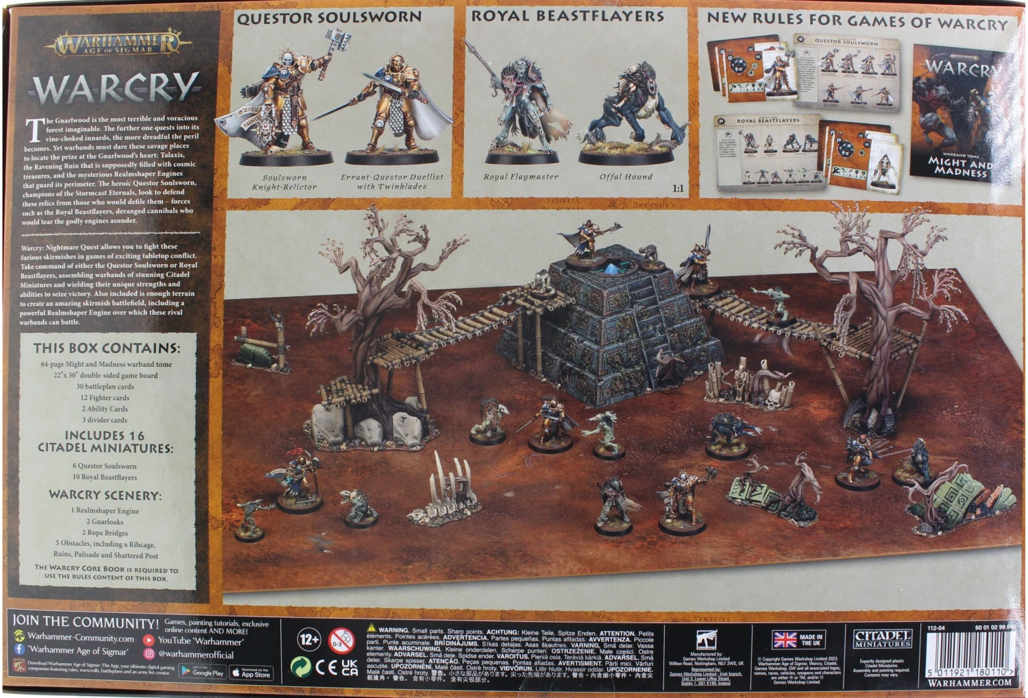 The final box in the Gnarlwood Warcry Season is Nightmare Quest! In this box we see Stormcast Eternals’ Questor Soulsworn pitted against the delusional Royal Beastflayers of the Flesh Eater Courts. In this box you will find both aforementioned Warbands as well as some Gnarlwood Terrain and rules needed to play your new Warbands. This kit is supplied unpainted and requires assembly.