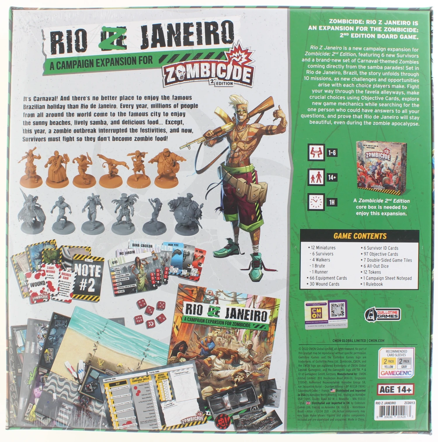 Zombicide: Rio Z Janeiro is a new campaign expansion for Zombicide 2nd edition. The setting is the busy streets of Rio de Janeiro where the Survivors must make it out of town as quickly as they can. However, along the way, they learn of a potential cure for the plague. Can they get to it in time, or must they head out to sea? This set includes an all-new narrative campaign to take players through a harrowing story of survival.